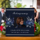 Ein Gästebuch für eine Gedenkfeier oder Beerdigung. Ein dunkelblauer Hintergrund mit blauen Blumen. Personalisieren und hinzufügen eines Fotos, Namens und Datums.