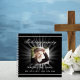 Ein Gästebuch für eine Gedenkfeier oder Beerdigung. Ein klassischer schwarzer Hintergrund, ein silbernes Imitat vorne. Die Sterne strahlen hinter dem Foto. Personalisieren und hinzufügen eines Fotos, Namens und Datums.
