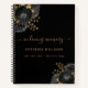 Schwarzer Hintergrund mit schwarzen Blumen und goldenem Blattwerk. Der Text: in liebevoller Erinnerung wird mit einem modernen handgeschriebenen Stilskript mit Swashes geschrieben. Personalisieren und fügen Sie einen Namen und Daten hinzu.