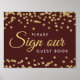 "Sign Our Wedding Guest book" Hochzeitsempfangssigne mit Gold Imitate Glitzer Confetti Marsala / Burgund Design