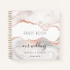 Für eine moderne, elegante Hochzeit. Stilvolle Rose vergoldete Imitat Marmor, agate Hintergrund. Fügen Sie Ihre Namen und das Hochzeitdatum hinzu. Mit dem Text: Gästebuch und unsere Hochzeit. Unsere Hochzeit ist mit einem angesagten handgeschriebenen Stilskript mit Swashes geschrieben.