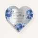 Imitat silber aussehender Hintergrund mit marineblau und hellblauen Blumen, Blume, Imitate Glitzer, Glitzern. Personalisieren und Ihre Namen und das Hochzeitstermin.