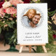 vorne: Ein stilvoller weißer Hintergrund mit einem silbernen Imitat. Fügen Sie Ihr Foto, die Namen und das Hochzeitsdatum hinzu. Die Namen werden mit einem modernen handgeschriebenen Stilskript geschrieben.