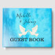 Editable Guest Book. Schöner, blauer Hintergrund mit Tauben und rosa Herzen. Ideal für Erinnerungen!