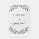 Transparenter Hintergrund Mit Lavendelblumen, Blume und Eukalyptus-Pflanzen dekoriert. Text: Bitte unterschreiben Sie das Gästebuch.