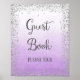Plakatdruck für Gästebuch Hochzeitsschild mit Imitaten silber Glitzer-Design und lila Aquarellhintergrund.