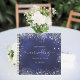 Ein stilvoller marineblauer Hintergrund mit Imitaten silberner Glitzer, Glitzern. Die blaue Farbe ist ungleichmäßig. Fügen Sie Ihre Namen und das Hochzeitdatum hinzu.