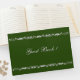 Weiße Reben auf Grün. Geben Sie den Namen des Ereignisses und das Datum in der Wirbelsäule ein, wenn Sie möchten. Bitte dreifach Karo alle Ihre Rechtschreibung und Daten.