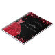Für eine Quinceañera, 15. Geburtstagsparty. Ein schwarzer Hintergrund mit roten Glitzern, Konfetti, ein rotes Kleid. Der Name wird mit einem modernen handgeschriebenen Stilskript mit Swashes geschrieben. Personalisieren und fügen Sie einen Namen und ein Datum hinzu. Um die Swashes behalten, löschen Sie nur den Beispielnamen, verlass die Leerzeichen oder Emoji's vor und nach dem Namen.