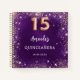 Ein Gästebuch für eine weibliche und glamouröse Quinceañera, 15. Geburtstagsfeier. Stilvoll lila Hintergrund mit lila Imitaten und Rose goldenen Glitzern. Die lila Farbe ist ungleichmäßig. Personalisieren und fügen Sie Ihren Namen und ein Datum.
