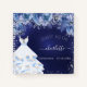 Für eine Quinceañera, 15. Geburtstagsparty. Marineblau mit Imitaten, Glitzern aus silberfarbenem Glitzer, weißem und blauem Kleid und blauen Blumen. Der Name ist mit einem modernen handgeschriebenen Stilskript geschrieben. Personalisieren und fügen Sie einen Namen und ein Datum hinzu.