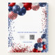Weißer Hintergrund. Mit patriotischen bunten Ballons in Rot-Blau und Weiß dekoriert. Blau-rote Glitzern. Name, Alter/Text hinzufügen