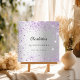 Ein Imitat silbermetallischer Hintergrund mit lila, violetten Imitaten Glitzer Staub. Personalisieren und fügen Sie einen Namen und ein Datum hinzu.