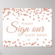"Sign Our Wedding Guest book" Hochzeitsempfangssigne mit Rose Gold Imitate Glitzer Confetti Weißes Design