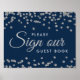 "Sign Our Wedding Guest book" Hochzeitsempfangssigne mit Silver Imitats Glitzer Confetti Navy Blue Design