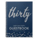 Elegantes 30. Geburtstag Party Silver Imitate Glitzer "Dreißig" Navy Party Gästebuchvorlage.