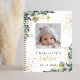 Für eine elegante Taufe, geschlechtsneutral. Ein schick weißer Hintergrund, mit Eukalyptusgrün dekoriert, Imitate vergoldeten Glitzer Staub und ein goldenes Kreuz. Personalisieren und fügen Sie ein quadratisches Foto auf der Vorderseite, den Namen des Kindes und das Datum der Taufe. Schwarze und goldene Buchstaben. Zurück: Fügen Sie Ihre eigenen 3 Fotos auf der Rückseite, Name und Geburtsdatum hinzu. Bilder in vertikaler Größe (Porträtgröße)