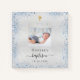 Ein silberfarbener Hintergrund mit silberfarbenem Hintergrund, mit blauen Imitaten verstaubt und mit einem goldenen Kreuz verziert. Personalisieren und fügen Sie ein quadratisches Foto auf der Vorderseite, den Namen des Kindes und das Datum der Taufe. Zurück: Fügen Sie Ihre eigenen 3 Fotos auf der Rückseite, Name und Geburtsdatum hinzu. Bilder in vertikaler Größe (Porträtgröße)