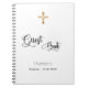 Weiße Hintergrundfarbe, mit einem goldenen Kreuz geschmückt. Fügen Sie einen Namen und ein Datum hinzu. Der Text: Das Gästebuch ist mit einem modernen, handgeschriebenen Stil geschrieben.