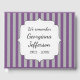 Dieses Gästebuchdesign zeichnet sich durch lila und graue Streifen aus, sowie einen personalisierten Namen und Geburts-/Todesjahre. Es könnte genutzt werden, um die Teilnehmer einer Beerdigung zu erfassen, und alle großen Erinnerungen, die sie von der kürzlich verstorbenen Person haben.