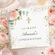 Für eine elegante Bestätigung. Weiße, schick wirkende Dekoration mit einer Rose aus Rose und Rosa, Eukalyptusgrün, vergoldetem Glitzer aus Imitaten und goldenem Kreuz. Personalisieren und fügen Sie Datum und Namen hinzu.