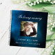 Ein Gästebuch für eine Gedenkfeier oder Beerdigung. Ein blauer Himmel als Hintergrund. Personalisieren und hinzufügen eines Fotos, Namens und Datums. Weiße Buchstaben.