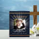 Ein Gästebuch für eine Gedenkfeier oder Beerdigung. Ein klassisch dunkelblauer Hintergrund, ein goldenes Imitat auf der Vorderseite. Sonne, Sternenstrahlen hinter dem Foto. Personalisieren und hinzufügen eines Fotos, Namens und Datums.