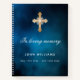 Ein Gästebuch für eine Gedenkfeier oder Beerdigung. Klassisch dunkelblauer Himmelshintergrund und goldenes Kreuz. Personalisieren und fügen Sie einen Namen und Daten hinzu. Weiße Buchstaben.
