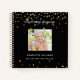 Ein Gästebuch für eine Gedenkfeier oder Beerdigung. Eine schwarze Hintergrundfarbe. Mit goldenen Herzen dekoriert. Personalisieren und hinzufügen eines Fotos, Namens und Datums.