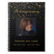 Ein Gästebuch für eine Gedenkfeier oder Beerdigung. Ein klassischer schwarzer Hintergrund und Imitate goldene Konfetti. Personalisieren und hinzufügen eines Fotos, Namens und Datums.