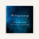 Ein Gästebuch für eine Gedenkfeier oder Beerdigung. Ein klassischer dunkelblauer Himmelshintergrund. Personalisieren und fügen Sie einen Namen und Daten hinzu. Weiße Buchstaben.