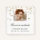 Ein stilvoller weißer Hintergrund mit goldenen Herzen. Mit dem Text: Forever in unseren Herzen, geschrieben mit einer eleganten Hand geschrieben Stil Skript. Fügen Sie einen Namen und Daten hinzu, ein Foto.