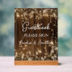 Wood Rustic White Floral String Lights Wedding Gästebuch Signing Sign - Dieses elegante braune Holz und Weiß Sign, mit schönen Saitenlichtern und weißem Blumen kann mit Ihren Hochzeitsdetails personalisiert werden (das Produkt ist nicht aus Holz).