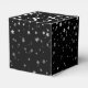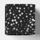 Gastgeschenk-Box in Schwarz mit einem festlichen Silber-Sterne-Druck. Passen Sie dieses Objekt an oder kaufen Sie, wie es ist.