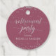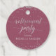 Diese eleganten und festlichen Gastgeschenk-Tags verfügen über silberne (simulierte Folie) Konfetti mit passenden Buchstaben, die "Pensionskasse Party" in einem wunderschönen Skript-Schriftart. Die Hintergrundfarbe ist ein Farbton von Rosa / Rose, kann aber in jede beliebige Farbe geändert werden.