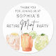 Funny Retirement Gunst Sticker: Reife MINT Party. Feiern Sie mit dieser modernen, Minimalistischen Cocktail Retirement Party Collection stilvoll das nächste Kapitel! Dieses Design eignet sich ideal, um jeden zu ehren, der in die aufregende Welt der Pensionierung eintaucht. Freuen Sie sich auf einen eleganten Schriftart mit Handschrift und drei aufregenden Aquarellcocktails. Egal, ob Sie einen Altersvorsorgejammer für einen Lehrer, Anwalt, Arzt, Künstler, Sekretär, Leiter des Gesundheitswesens, Ingenieure, Bauunternehmer, Marketing, Bauwesen oder andere Berufe werfen. Diese individuell anpassbare Kollektion ist ideal, um Ihrem Party eine persönliche Touch hinzuzufügen, die es zu einem echten Einmaleins macht! Einfach zu personalisieren und auf Ihr einzigartiges Altersvorsorgeereignis zugeschnitten, ist es der ultimative Weg, diesen besonderen Meilenstein mit einem modernen, unterhaltsamen Flair zu markieren! In der gesamten Auflistung finden Sie weitere passende Elemente.
