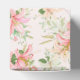 Dieses Gastgeschenk ist perfekt für Ihre Hochzeitsfeier, gezeigt mit einem schönen rosa Lilienblumendruck. Passen Sie dieses Objekt an oder kaufen Sie, wie es ist. Stock Print freepik.com