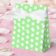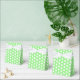 Gefälligkeitskasten in einem Frühlingsgrün und Weiß-Polka-Punkte-Druck. Passen Sie dieses Objekt an oder kaufen Sie, wie es ist.