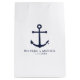 Moderne Minimalistische Nautical Navy Blue Anchor Gastgeschenk Hochzeit Geschenktasche mit marineblau Anker und personalisierten Braut und Bräutigam mit Hochzeitstermin in marineblau modernen Sans serif Schriftart Stil auf weißem Hintergrund. Ideal für Hochzeiten mit Wassersportaktivitäten, Hochzeiten zum Thema Strand und vieles mehr.