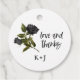 Rustikale und gotische halloween Thema Gastgeschenk Hochzeit Tag mit der Abbildung von schwarzen Rose auf einem weißen Hintergrund.