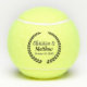 Für die Braut und Bräutigam, die Liebe, Tennis zu spielen! Dieser elegante, schwarz-silberne Tennisball mit einem Kranz von Blätter ist ein Genuss und ein Andenken für Ihre Hochzeitswochenrennen oder für eine Tennishochzeit! Personalisieren Sie mit den Namen und dem Hochzeitstag Ihrer Wahl. Die Farbe und der Schriftart des Textes können nach Ihren Wünschen geändert werden.
