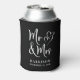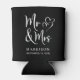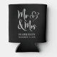 Gib einen Hochzeitstoast und deinen Gästen ein lustiges Souvenir, um deinen besonderen Tag mit dieser speziellen schwarzen Dose cooler mit "Mr. & Mrs." geschrieben in einem eleganten weißen Drehbuch und einer Illustration von zwei Herzen vereint. Fügen Sie unten Ihren Namen und Ihr Hochzeitstermin hinzu.