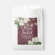 Gastgeschenk Hochzeit Tasche, Dusche Leckereien bevorzugen Beutel Vorlagen - Elegante weiße Wasserfarbe Hydrangea Blume und String Lights auf Burgundy Red Background. Ein perfektes Design für Ihren großen Tag! Alle Textstile, Farben, Größen können an Ihre Bedürfnisse angepasst werden.