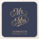 Diese Untersetzer verleihen jedem Tischumfeld Eleganz mit marineblau-blauem Hintergrund und goldener, kursiver Schrift. Das Design von Mr. und Mrs., zusammen mit dem Familiennamen und dem Hochzeitstag, machen diese Untersetzer zu einer charmanten und personalisierten Touch für Ihre Feier.
