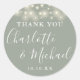 Sage green Gastgeschenk Hochzeit dankt Ihnen für den klassischen Rundaufkleber mit hübschen Streichlichtern und Signaturstil-Namen. Personalisieren Sie mit Ihrem besonderen Dank Details in modernen weißen Typografie. Entwickelt von Thisisnotme©