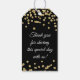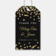 Elegantes Hochzeitsdesign "Favor Tag" mit Gold Imitate Glitzer Confetti Black Motiv, individuellen Namen und Date Text. Beeindrucken Sie Ihre Familie und Freunde mit diesem stilvollen Design.