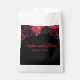 Gotische Elegance Gastgeschenk Hochzeit Tasche Machen Sie eine kühn und dramatisch Aussage mit dieser atemberaubenden Gastgeschenk Hochzeit Tasche, die perfekte Touch für Ihre gotische, Halloween, Heide, Wiccan, oder spirituell inspirierte Hochzeit. Die Tasche ist mit einem schwarzen Hintergrund, blühenden Akzenten in Rot und Schwarz und einer auffallenden roten Schrift gestaltet und ergänzt wunderbar die Schwarz-Rot-Hochzeitsfarben, während Sie Ihrem Fest ein Element dunkler Romantik und Eleganz hinzufügen. Die Vordertasche ist mit den Namen des Paares und dem Hochzeitstag abgestimmt und elegant in knalligem rotem Schriftart dargestellt, der sich vor dem dunklen Hintergrund abhebt. Egal ob mit süßen Leckereien, kleinen Kuchen, Kerzen oder personalisierten Token gefüllt, diese Gunsttasche trägt zur mystischen und bezaubernden Atmosphäre Ihres Hochzeitstages bei. Diese Taschen sind perfekt für Sitzgelegenheiten, Desserttische oder auch als Zuhause-Take-Gabe geeignet. Sie sind funktionell und stilvoll und sorgen für einen angenehmen verlass Ihrer Gäste. Das moody und dennoch romantisch gestaltete Design eignet sich ideal für gotische Empfänge, Candlelit-Zeremonien oder Hochzeiten mit einer mysteriösen und eleganten Touch. Diese gotisch inspirierte Gastgeschenk Hochzeit-Tasche ist mehr als nur eine Verpackung, sie ist ein Symbol für Liebe, Leidenschaft und Wertschätzung und ermöglicht es Ihren Gästen, ein Stück Ihrer Hochzeitszauber mit sich zu führen. Lass deinen Gefallen so wunderschön und unvergesslich wie die Liebe, die sie feiern.