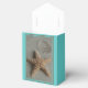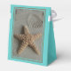 Diese Gastgeschenk Hochzeiten mit Strandmotiven sind mit einem Foto eines Seesterns im Sand als Brennpunkt mit dem Aufdruck einer Muschel versehen. Das Foto ist von einer schönen Aquarelle umgeben und ein hübsches, weißes Band wird verwendet, um die Gunst-Box mit den Worten "Danke" unter dem Band nah zu machen. Dies ist eine wunderschöne Vorzugbox für einen Hochzeitsempfang zum Thema Strand. Htenishouseopapier