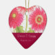 Gastgeschenke Hochzeit - hübsche rosa gerber Gänseblümchen schmücken diese Herz geformte Andenkenverzierung, die für wedding oder Brautpartybevorzugungen perfekt ist. Fertigen Sie mit Braut- und Bräutigamnamen und Ereignisdatum besonders an.