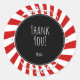 Rote und weiße Whimsical Fun Stripes Gastgeschenk Sticker. Entsprechende Einladungen sind verfügbar.